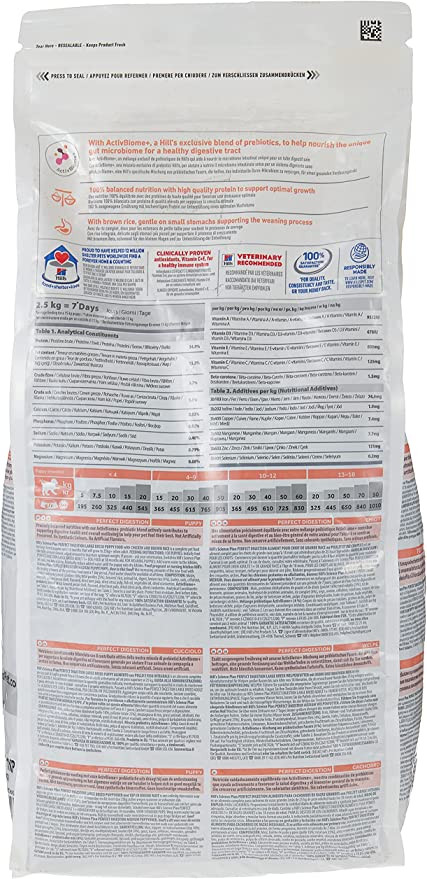 Hill’s Science Plan PERFECT DIGESTION Large Puppy food with Chicken & Brown Rice Contains ActivBiome+, a Hill’s exclusive blend of prebiotics to nourish your dog’s unique microbiome and help them reach their full potential.